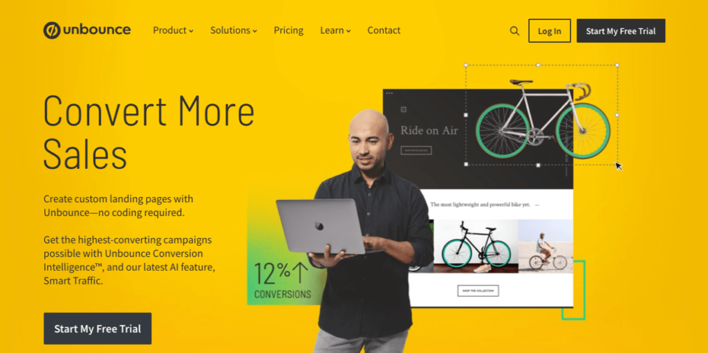 Unbounce is a platform that allows you to create custom landing pages without any particular coding skills.